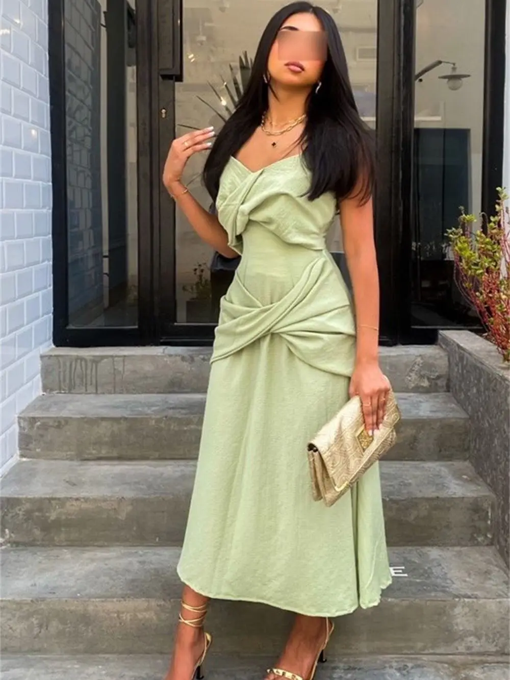 Зеленые элегантные платья для выпускного вечера с V-образным вырезом длиной до щиколотки атласные на бретельках с рюшами Модные Формальные Вечерние платья для особых мероприятий