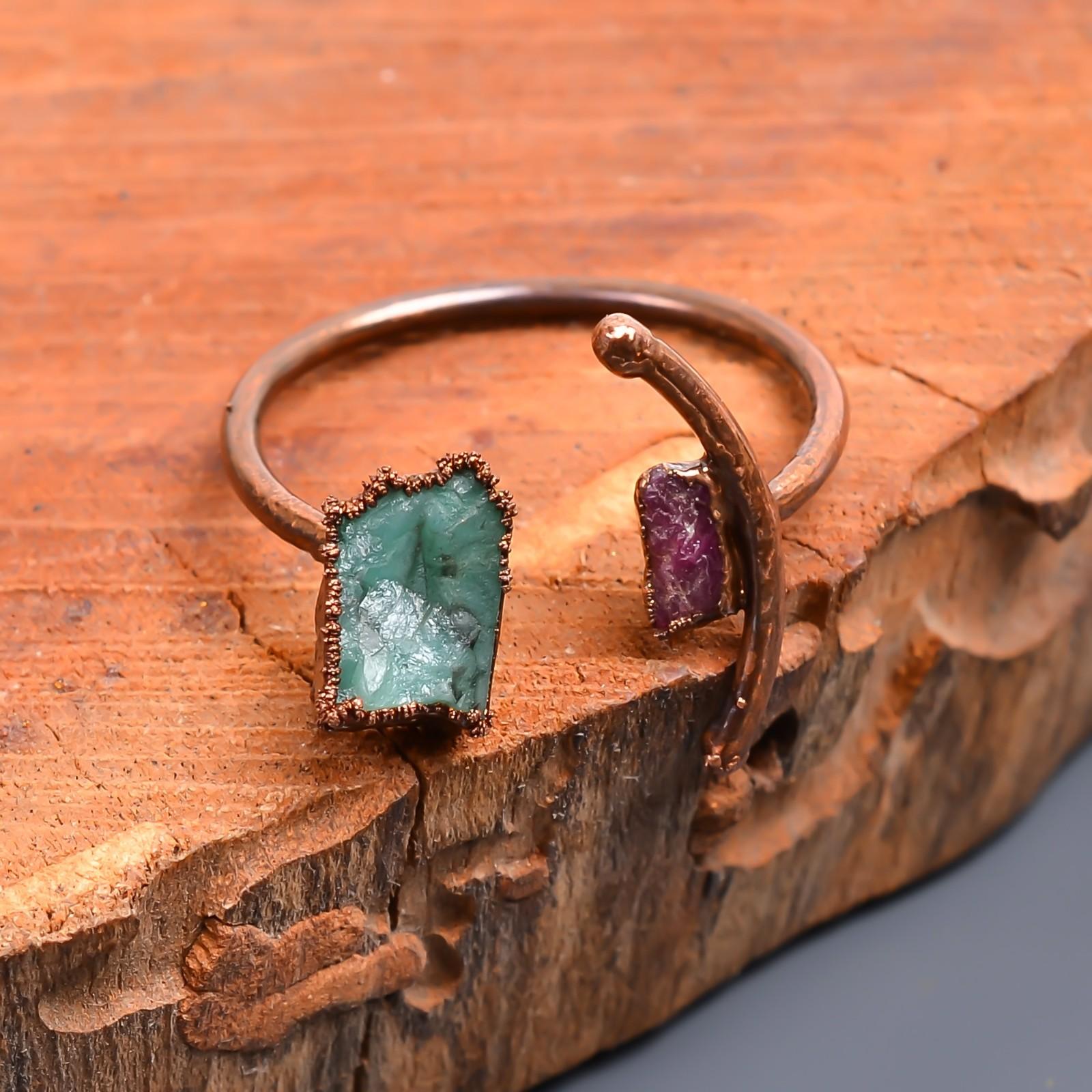 Зеленый Изумрудный Камень Медь Заявление Коктейль Подарок Дочери Гальванопластированное Кольцо V-41