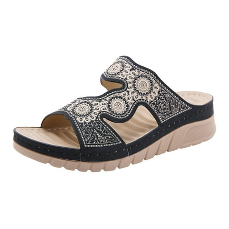 dmqupv Fashion Breathable Sandals Beach Slip-On Shoes Wedges Women Summer Toe Open Women s Womens Plush Slippers Bear Female flats-sandals Black 7.5