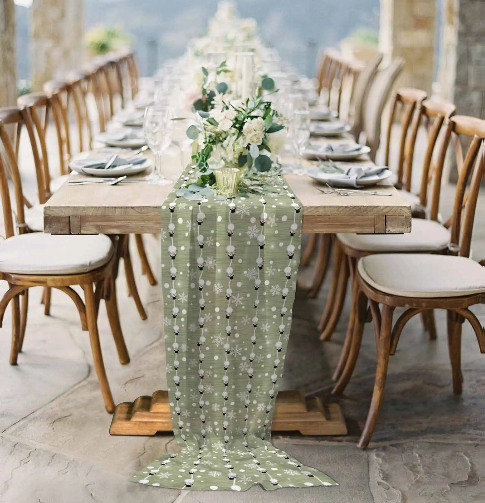 Зеленый Рождественский Снеговик Линия Прозрачный Шифон Скатерть Для Стола Свадьба День Рождения Тюль Вуаль Скатерть