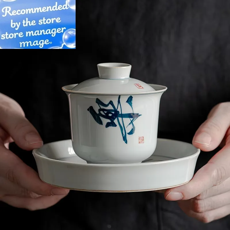 Зеленый гавайский набор в стиле ретро, ручная роспись, каллиграфия, поэзия, заваривание чая, фарфоровый чайный сервиз для кунг-фу, дзен, керамика, ручная роспись