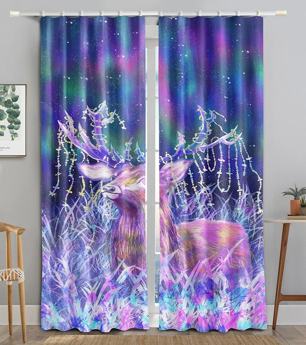 Зеленый лес лось высокие затемняющие шторы сказочный мир розовое звездное небо шторы спальня отель универсальный новый модный узор W55 X H120cm X 2&Grommet Top