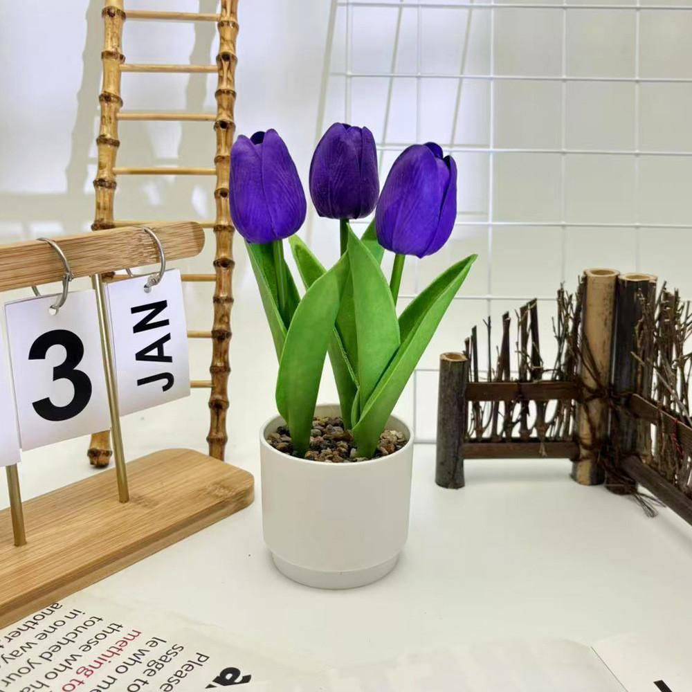 Зеленый цветок тюльпана Растение Речная галька Бонсай Для фотографии и декора офиса фиолетовый