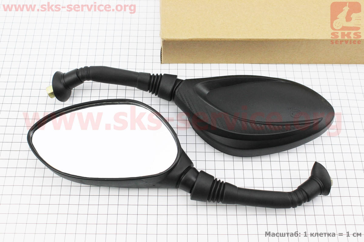 Зеркала к-кт DIO- черные с карбоновой вставкой капли", м8 "длинная ножка в чехле резиновом" (ССС - знак