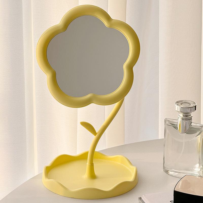 Зеркало в форме цветка Декоративные зеркала Зеркало для макияжа с украшениями Аксессуары для волос Поднос Настольное зеркало Домашний декор жёлтый