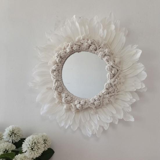ТЫ ХОМ: Ваш модный домашний декор Что может предложить вам этот декор настенного зеркала, так это то, что он завернут в перья и хлопчатобумажную веревку, даже если он случайно упадет, он не сломается. Этот декор настенного зеркала, который имеет акриловый зеркальный дизайн, может быть использован в качестве зеркала при украшении вашей комнаты. Он изготовлен из акрилового анти-капельного зеркала, пера, ватного веревочного плетеного венка и соломенного дна. Диаметр этого изделия составляет 45см. Он подходит для гостиной, детской игровой комнаты, столовой, кухни, спортивных залов, дома, офиса, прихожей, крыльца и многих других. Имя элемента: Зеркало декор Материал: Акрил, хлопковая веревка, синтетическое перо Характеристики: Ручная работа, Анти-капли, Стильный Детали размера: Диаметр зеркального декора: 45см(Прибл.) Заметки: Из-за разницы в освещении и настройках экрана цвет элемента может немного отличаться от изображения. Пожалуйста, позвольте небольшую разницу в размерах из-за различных ручных измерений. В коплект входит: 1 x Зеркальный декор