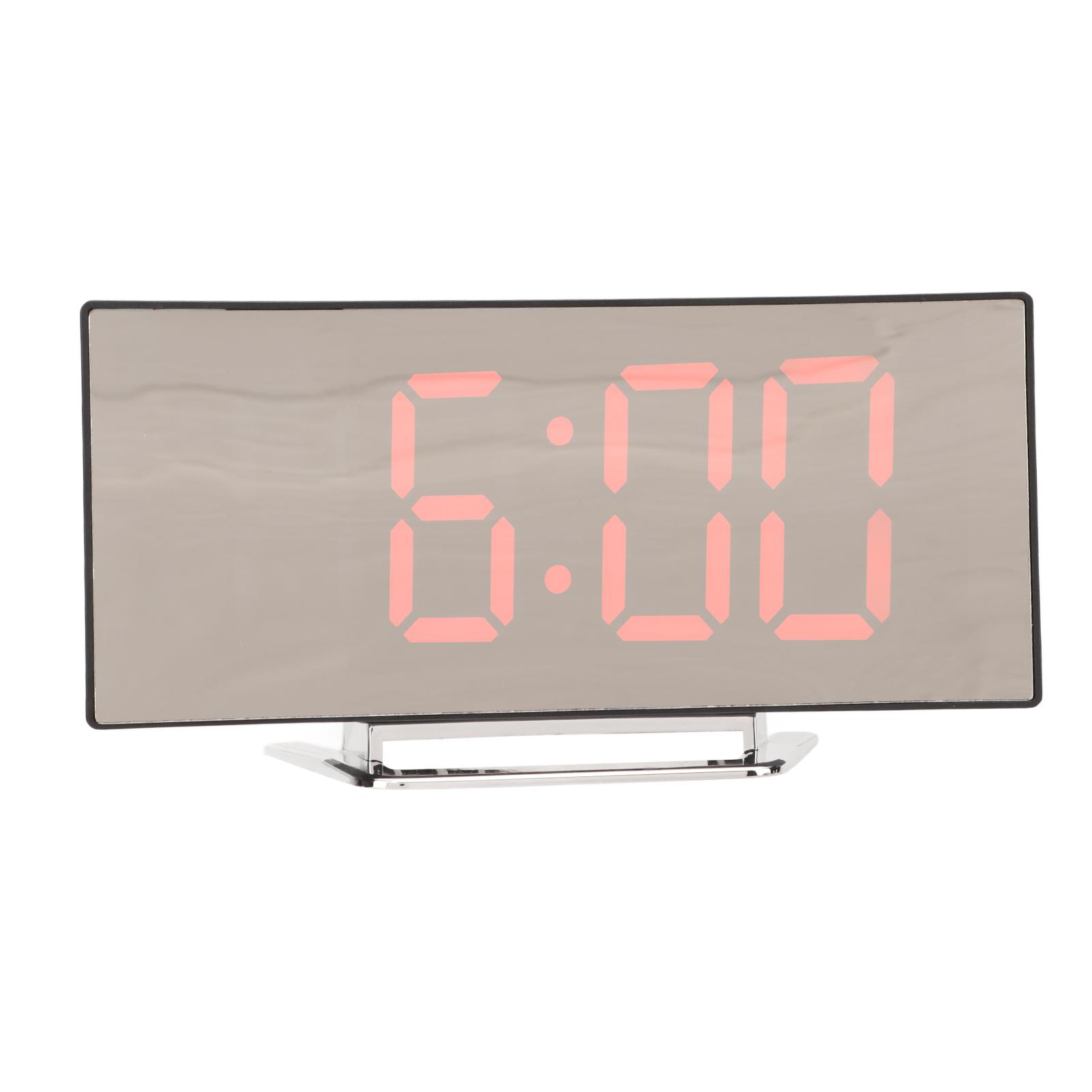 Зеркальный цифровой будильник с дисплеем температуры, светодиодные изогнутые зеркальные цифровые электронные часы для дома красный
