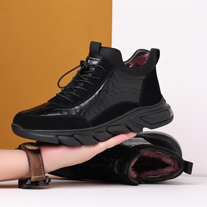 Зима новая кожа коровья шерсть мужские хлопковые туфли мода спорт перерыв мужская обувь бархат теплые Северо-восточные кожаные туфли тренд 44 чёрный