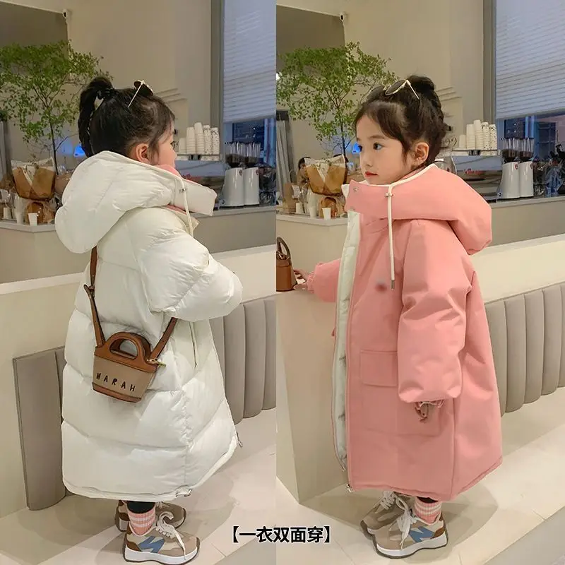 Зима 2023 пуховая хлопковая одежда для маленьких девочек пальто с капюшоном двойная одежда плюшевая утолщенная теплая Корейская Модель средней длины