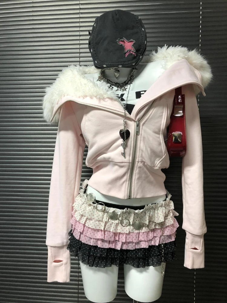 Зимнее американское винтажное милое плюшевое пальто с капюшоном, женское новое дизайнерское модное пальто на молнии Y2k, эстетичная ретро популярная куртка для цыпленка, 2025 г.