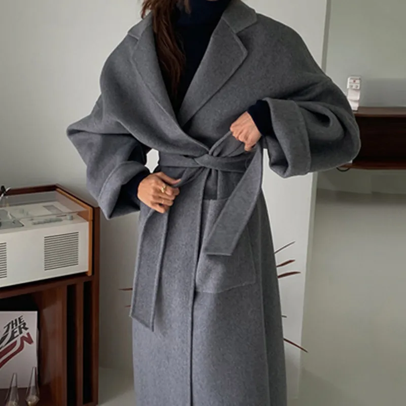 Зимнее винтажное шерстяное пальто с поясом, женская утепленная длинная куртка большого размера на шнуровке с большими карманами, Женская О...