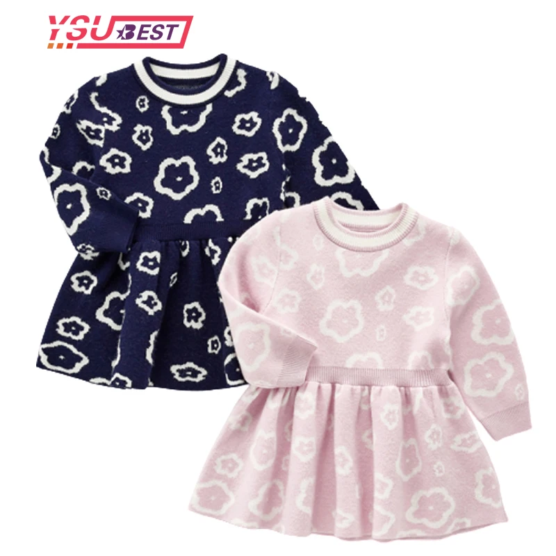 Зимнее вязаное платье для маленьких девочек от 0 до 3 лет теплые платья для новорожденных с цветочным принтом осеннее платье-свитер для мале...