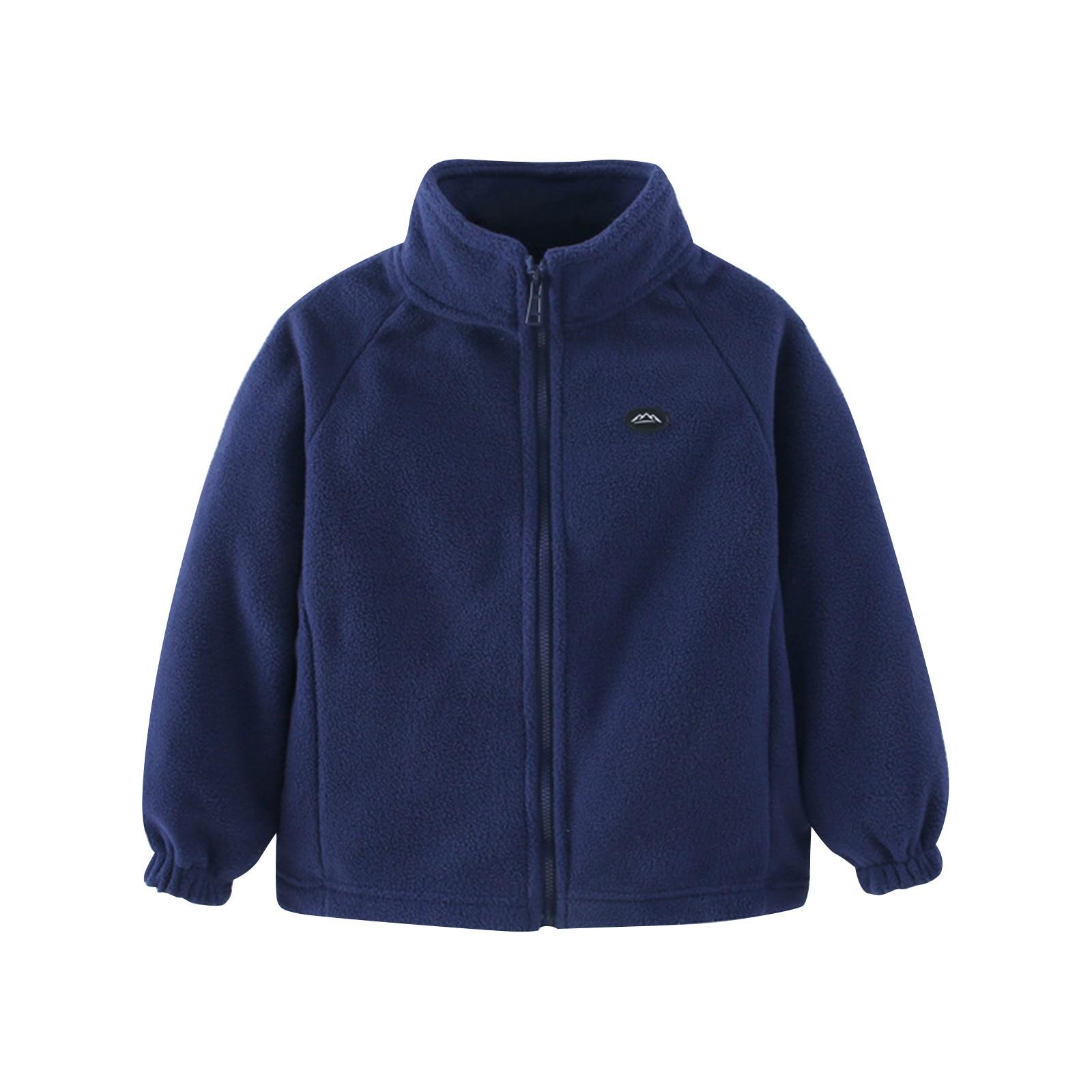 Зимнее детское флисовое пальто для мальчиков и девочек, однотонное повседневное пальто 150 тёмно-синий