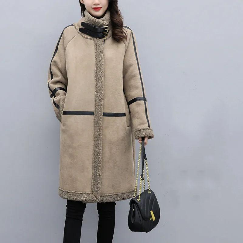 Зимнее женское пальто высокого качества с мехом, толстое теплое плюшевое стильное кашемировое повседневное уличное пальто с лацканами из овечьей шерсти 5XL XXXXL