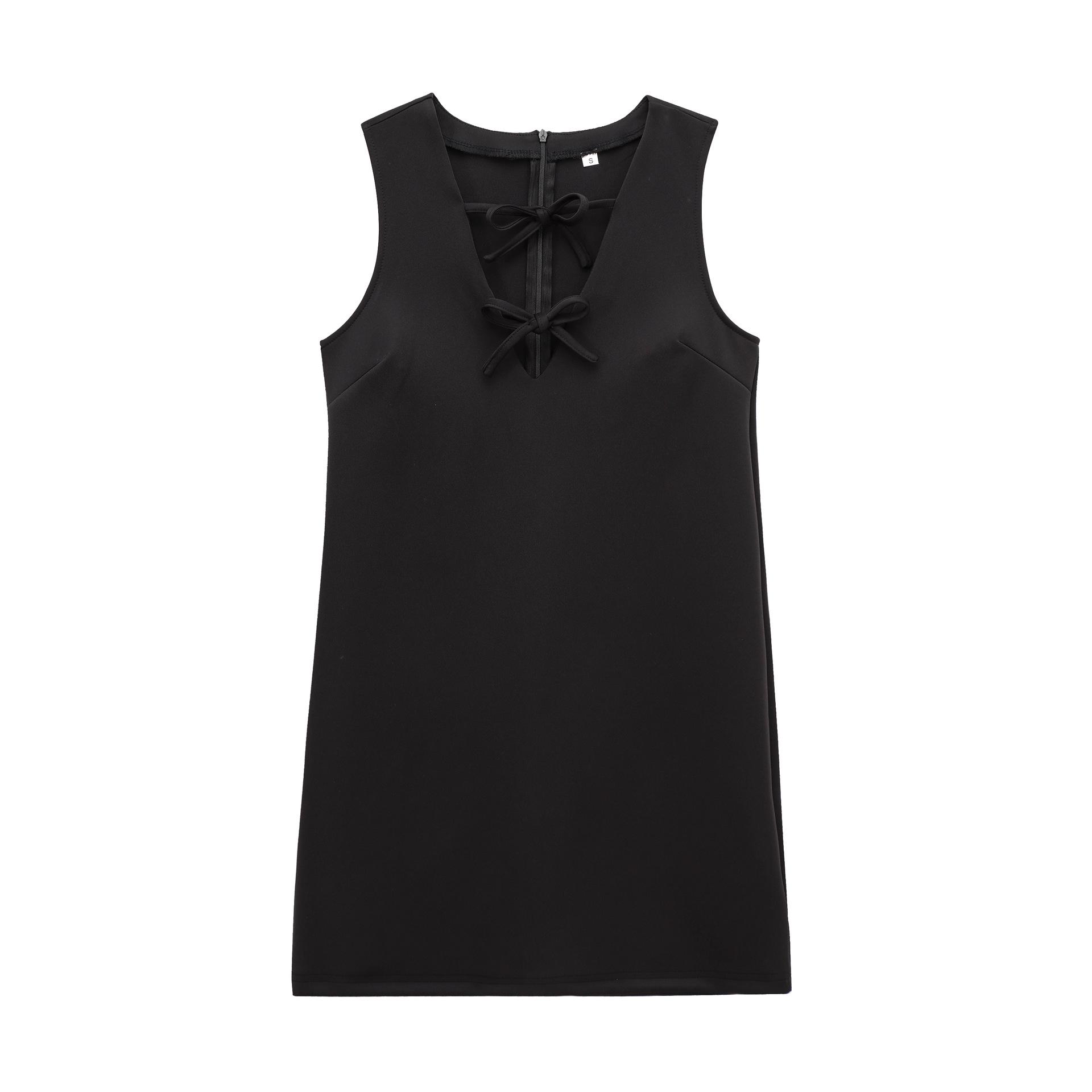 Зимнее женское платье европейского и американского стиля приталенного кроя с бантом, 2024 Large чёрный