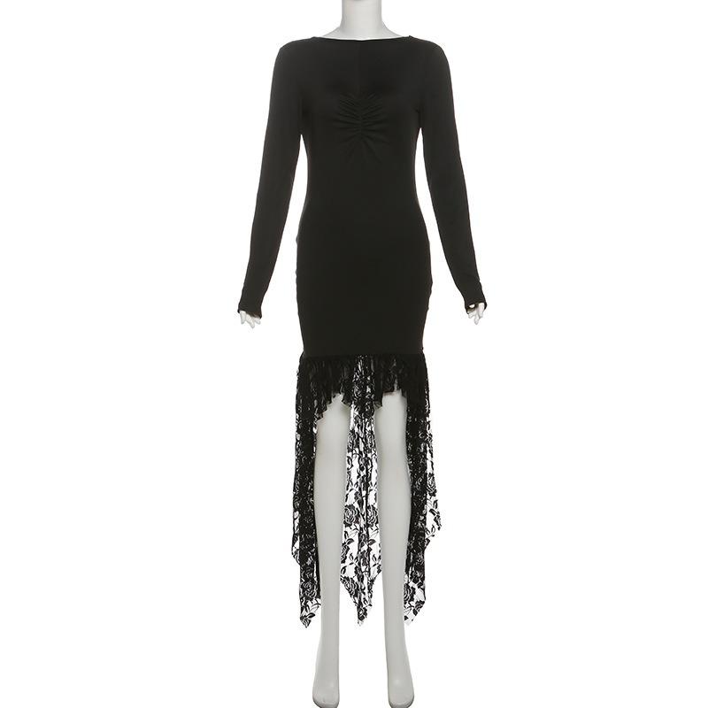 Зимнее женское элегантное платье с длинными рукавами и асимметричным кружевом в стиле пэчворк для похода в горы S чёрный