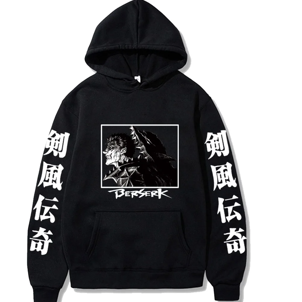 Japanese anime Dark Manga Berserk Anime Hoodies Cartoon Manga Guts Sweatshirt Black Pullover Oversized Causal Men's hoodies