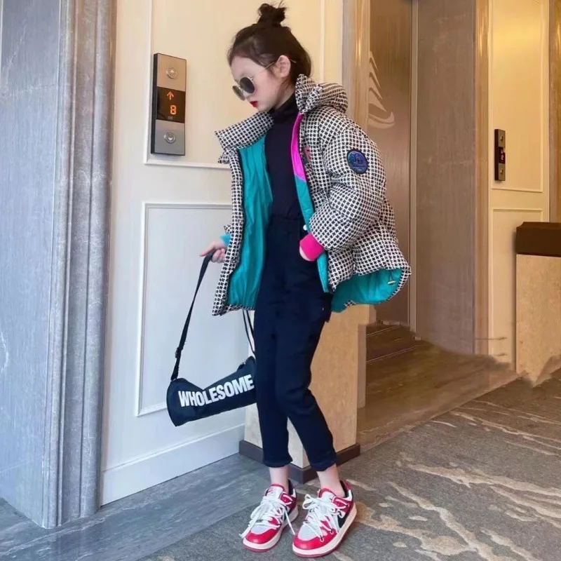 Зимнее плотное пальто для девочек, детская клетчатая парка с хлопковой подкладкой, теплый топ, Детская верхняя одежда на молнии с капюшоном,...