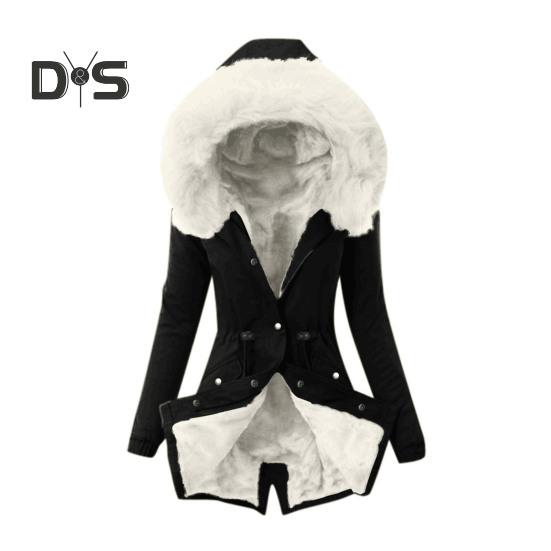 Зимнее пуховое пальто с подкладкой, меховым капюшоном и карманами, застежка-молния, парка, ветрозащитная, сохраняющая тепло, повседневная верхняя одежда для холодной погоды, куртка S