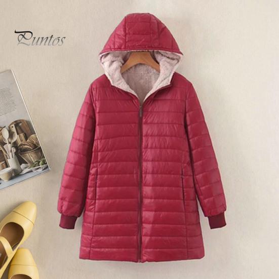 Зимнее пуховое пальто с утолщенным стеганым плюшевым капюшоном, средней длины, с полной молнией, ветрозащитное, с длинными рукавами, карманами, теплая повседневная верхняя одежда, хлопковая куртка M вино красного