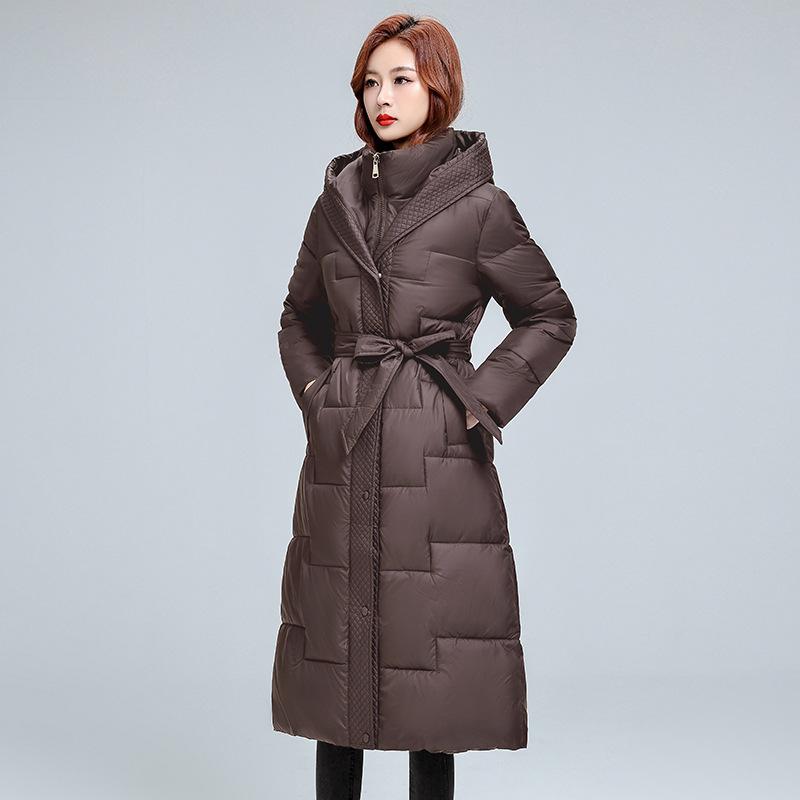 Зимнее пуховое хлопковое пальто 2025 года большого размера, длинное пальто на хлопковой подкладке ниже колена, женское модное пальто на хлопковой подкладке 7XL кофейный