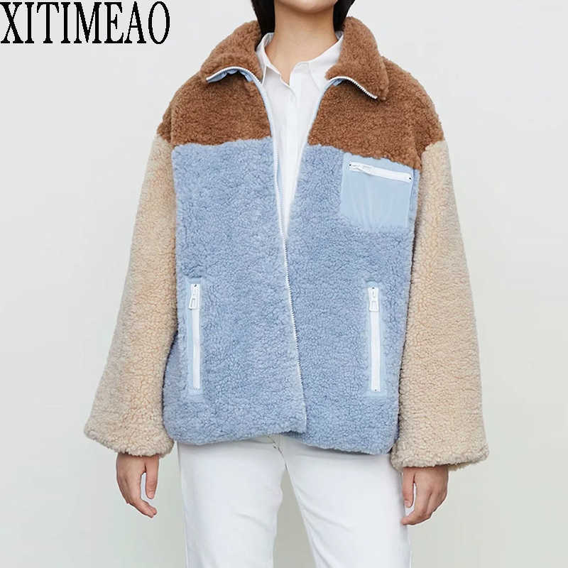 ZA Winter Thicken Warm Lambskin Jacket Coat Women Casual Fashion Lamb Faux Fur Overcoat Fluffy Cozy Loose Outerwear Female 210602, As picture