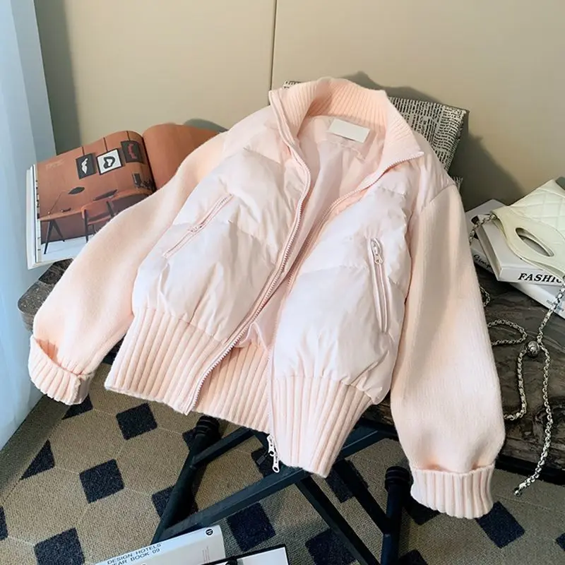 Зимнее теплое милое розовое вязаное женское пальто с вышивкой, новая модная милая короткая куртка на хлопковой подкладке, эстетичная нежная тонкая одежда