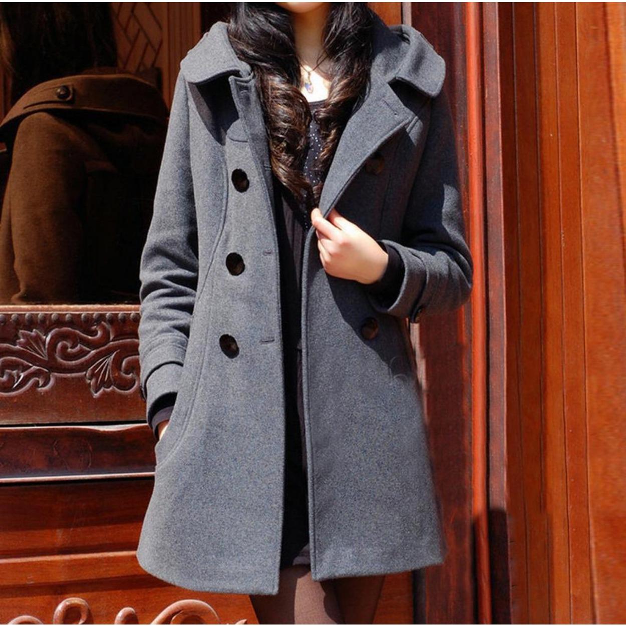 Зимнее толстое шерстяное пальто, женское хлопковое облегающее шерстяное пальто средней длины с капюшоном S чёрный