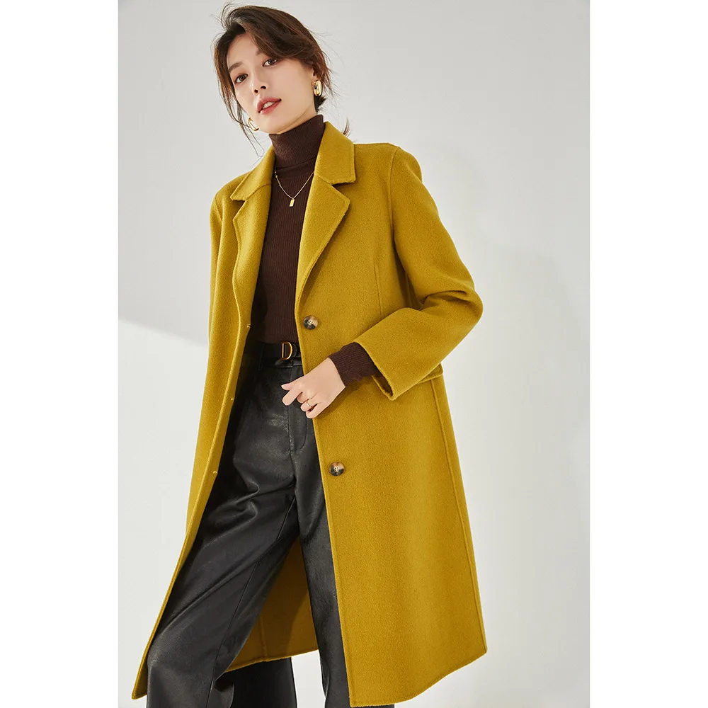 Зимнее шерстяное пальто, женское прямое черное пальто средней длины с лацканами, однобортное осеннее простое красное Двустороннее пальто из 2021-ной шерсти, новинка 100%