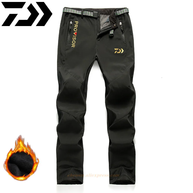 Зимние Походные штаны Daiwa для рыбалки, мужские теплые флисовые мягкие брюки, уличные спортивные толстые водонепроницаемые штаны для горнол...