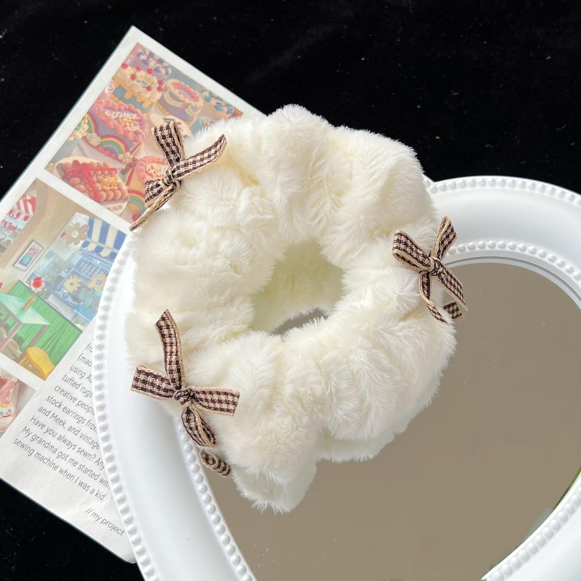 Зимние Теплые Мягкие Скранчи для Волос для Женщин Девушек Милые Плюшевые Эластичные Резинки для Волос с Бантом Резинка Аксессуары для Волос