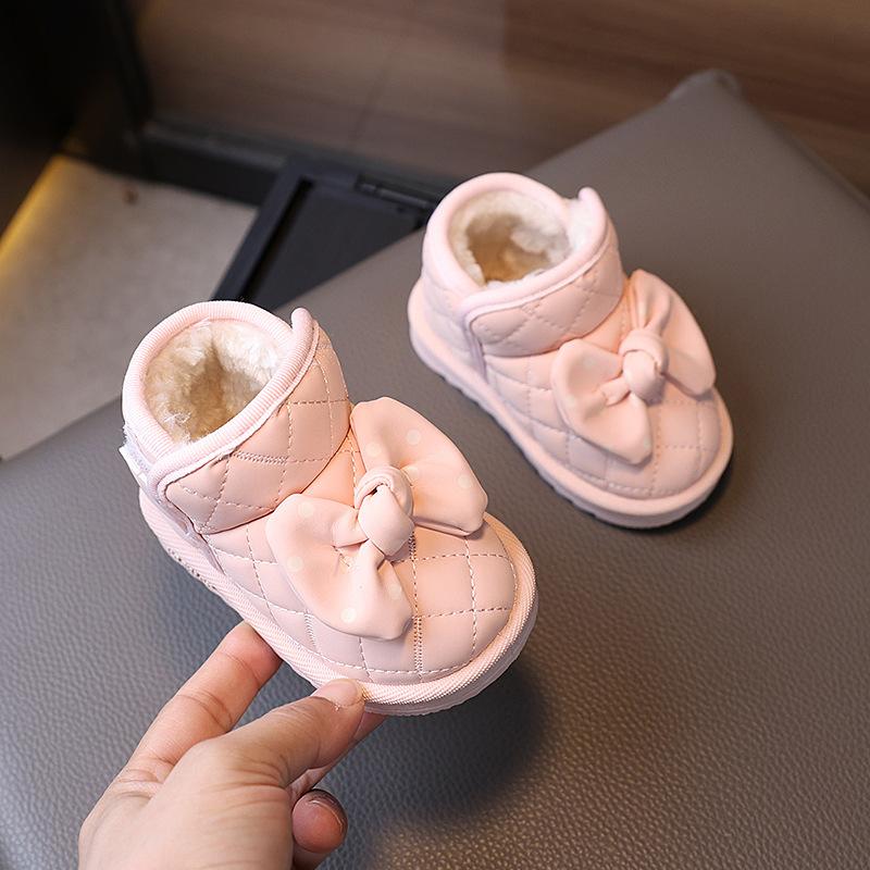 Зимние детские зимние ботинки 2025 г. Теплая плюшевая хлопковая обувь для детей от 1 до 6 лет Водонепроницаемая удобная мягкая подошва Нескользящая милая детская обувь 17inner12cm розовый
