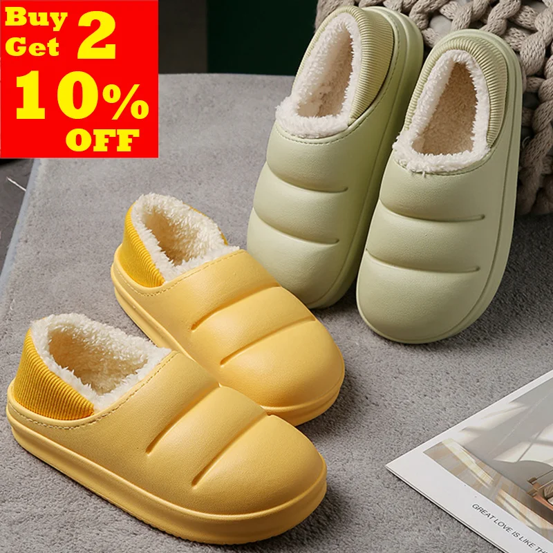 Зимние женские меховые тапочки, водонепроницаемые теплые плюшевые домашние сланцы, домашняя обувь на толстой подошве, Нескользящие однотонные сандалии для пар