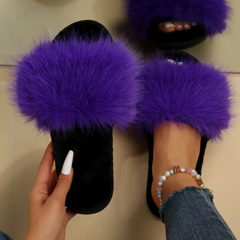 Зимние женские модные меховые тапочки 2023, пушистые и милые плюшевые женские роскошные уличные Нескользящие прочные тапочки с плоской подошвой