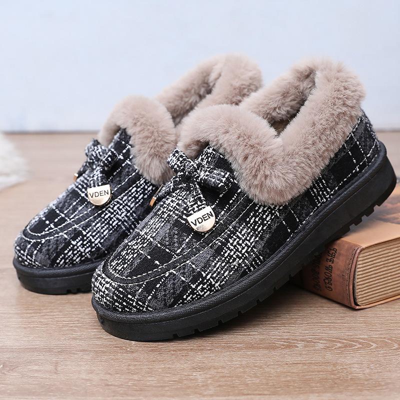 Зимние женские мокасины с меховой подкладкой, мокасины на платформе, домашняя обувь для отдыха на открытом воздухе, женские толстые теплые плюшевые удобные нескользящие мокасины 36 чёрный