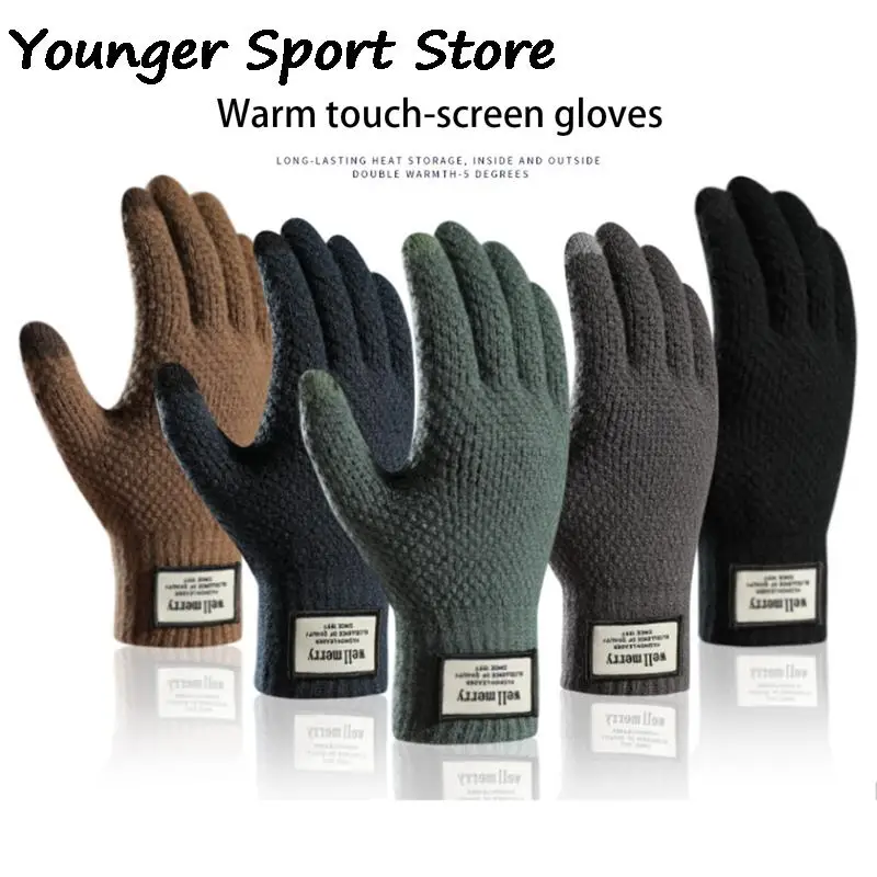 Зимние женские мужские вязаные перчатки кашемировые вязаные женские осенне-зимние теплые плотные перчатки для сенсорных экранов лыжные ве...