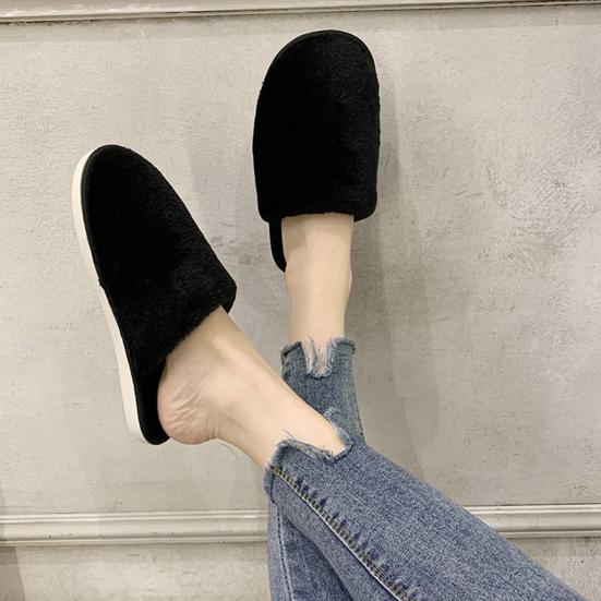 Зимние женские однотонные плюшевые теплые шлепанцы с закрытым носком, домашняя домашняя обувь