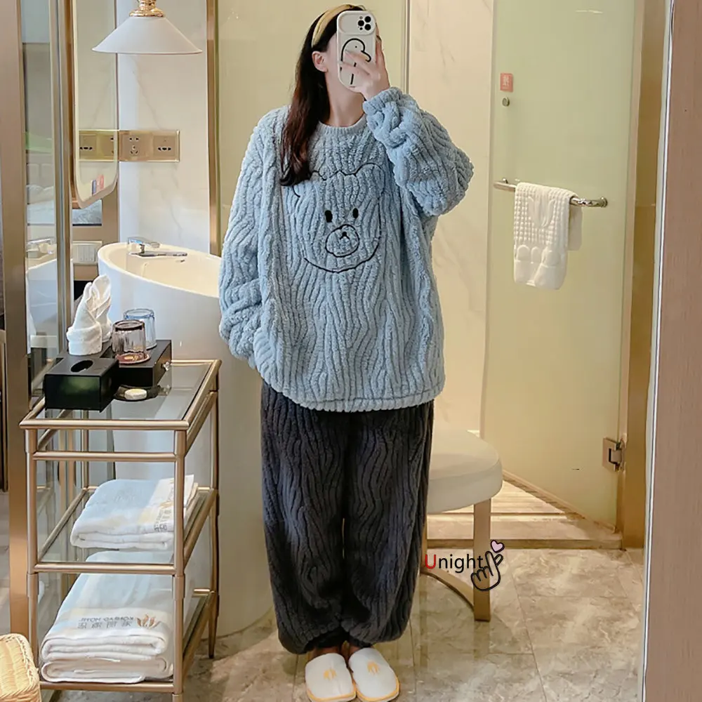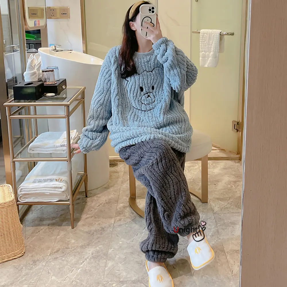 Зимние женские пижамные комплекты, мультяшная фланелевая одежда для сна большого размера, бархатная Домашняя одежда, утепленная Коралловая флисовая Домашняя одежда, женская верхняя одежда