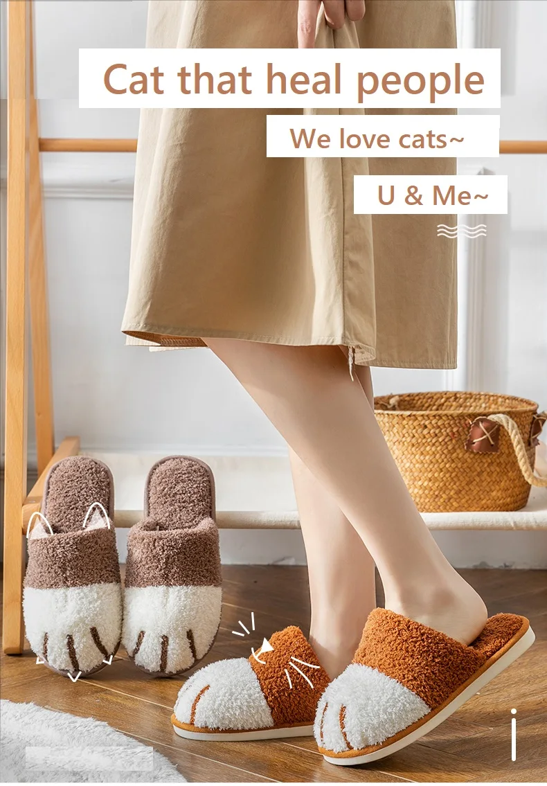 Зимние женские тапочки для дома с мультяшным рисунком кошачьей лапы дизайн Мягкая Плюшевая Гибкая нескользящая подошва домашняя плоская о...