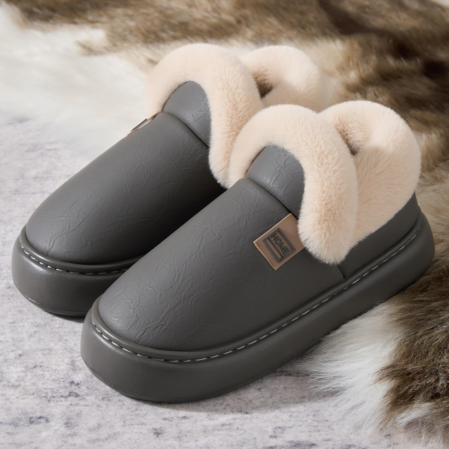 Зимние женские хлопковые тапочки плюшевые теплые на толстой подошве шлепанцы дышащие мягкие нескользящие тапочки для дома и улицы мужские повседневные тапочки 44-45 серый