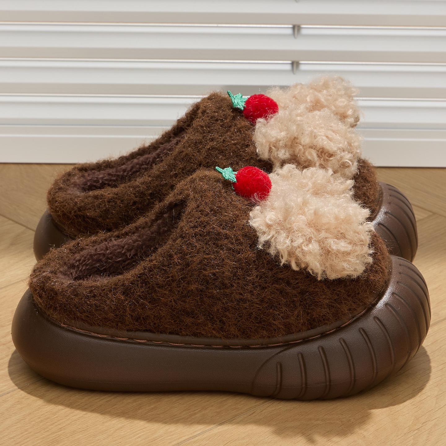 Зимние милые детские домашние тапочки плюшевые теплые с толстой подошвой шлепанцы мультяшные удобные нескользящие тапочки для дома и улицы мужские повседневные тапочки 34-35