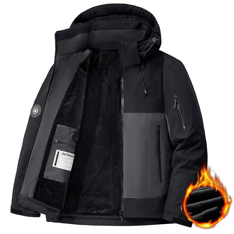 Зимние мужские толстые теплые водонепроницаемые парки куртки шапка съемная шерстяная подкладка флисовые пальто мужская парка большого размера зимняя куртка XS чёрный