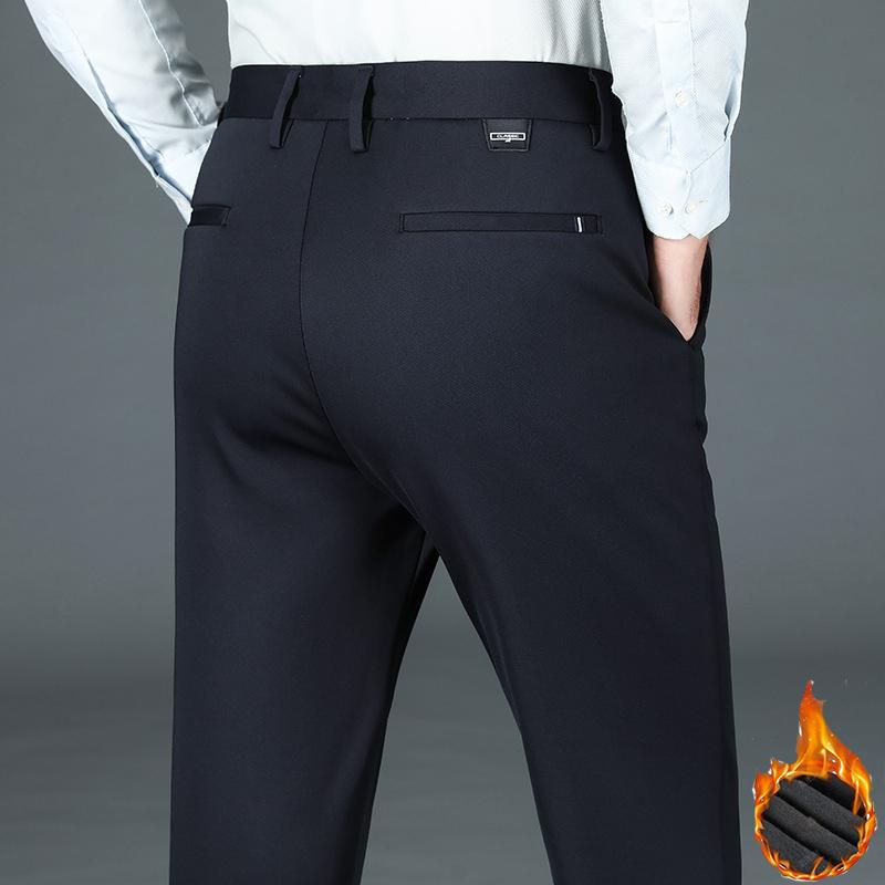 Зимние новые плюшевые толстые мужские повседневные брюки прямого кроя, деловые брюки, свободные и универсальные эластичные брюки 42 темно-синий