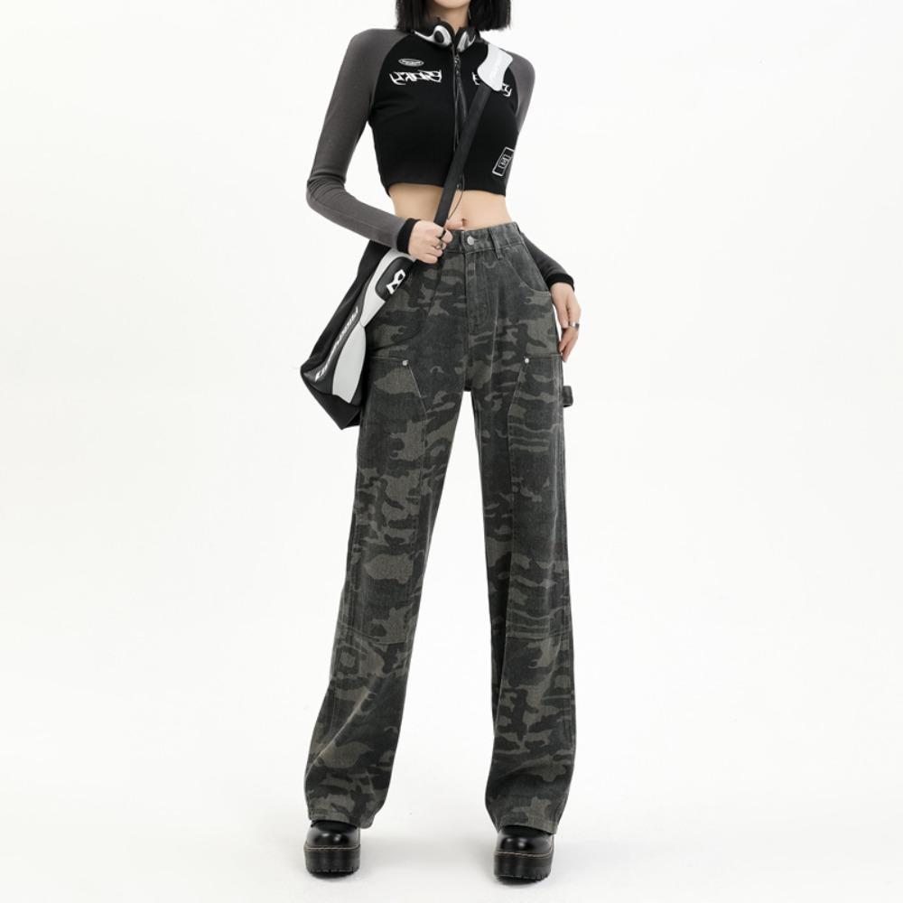 Зимние и осенние популярные камуфляжные повседневные джинсы женские комбинезоны прямого кроя в стиле милитари зеленого цвета уличные брюки 2XL камуфляжный