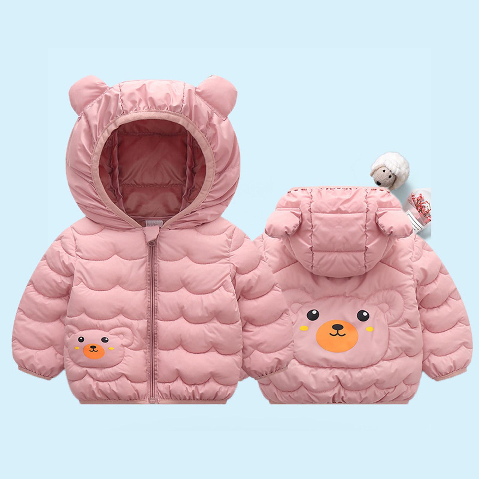 Зимние пальто для мальчиков и девочек, детская куртка на молнии с толстыми ушами, зимняя толстовка с капюшоном, одежда 90 розовый