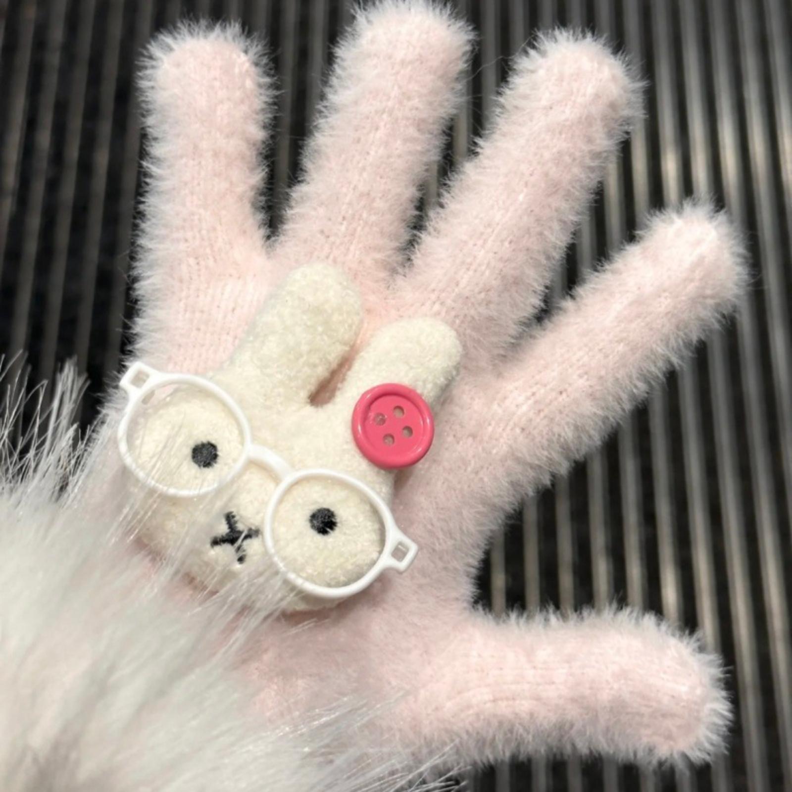 Зимние перчатки Плюс бархатные Толстые Защищающие от холода Велосипедные Сенсорные Вязаные перчатки Теплые Унисекс Шерстяные перчатки One Size розовый