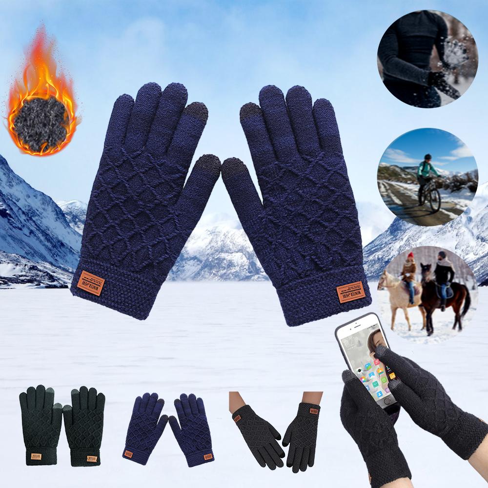 Зимние перчатки с сенсорным экраном, теплые мужские термовязаные варежки, ветрозащитные уличные перчатки