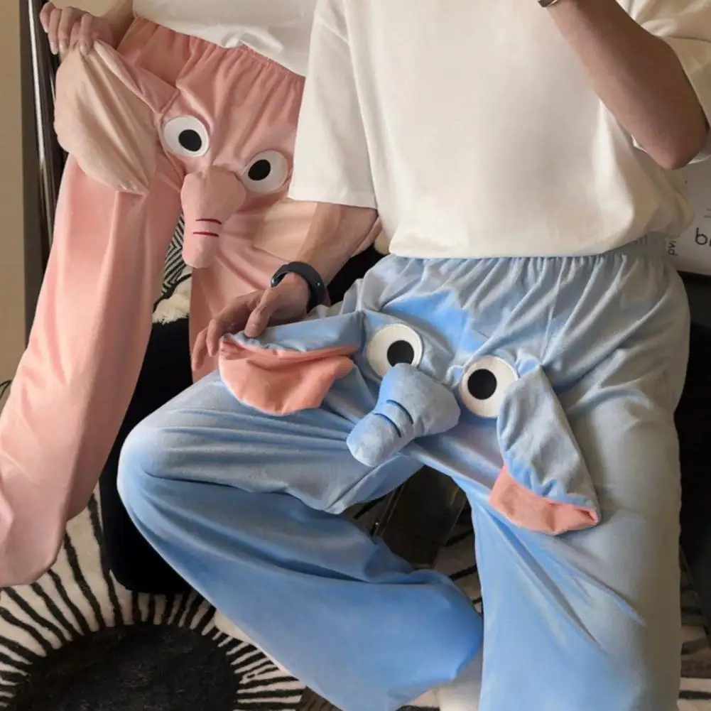 Зимние пижамные штаны для пары, Уютная зимняя Пижама с изображением слона, Мультяшные штаны для пар, плотные плюшевые теплые штаны для дома