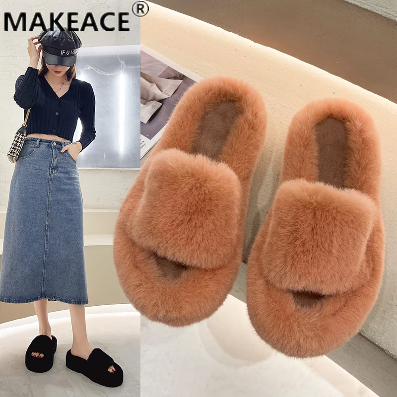 Зимние плюшевые тапочки, модные женские домашние хлопковые тапочки большого размера, замшевые домашние Нескользящие шлепанцы на толстой п...