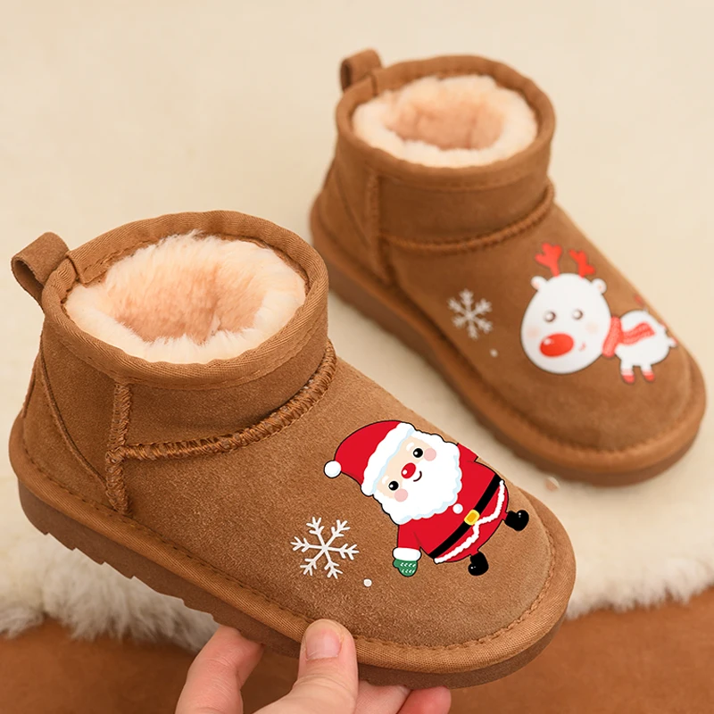 Зимние сапоги для девочек, детские теплые хлопковые сапоги, новый стиль зимы 2025 года, плюшевая толстая зимняя хлопковая обувь для мальчиков